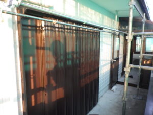 ↓ 作業中は養生をしていても、風や作業の動線で塗料が点で付いてしまうことがあります。