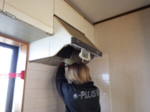 まず上から: レンジフード→吊戸棚の順で撤去