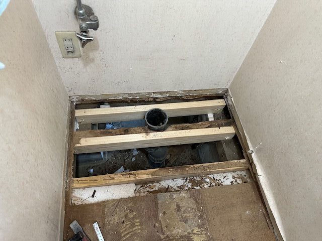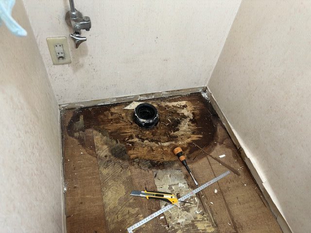 本日の施工はここで終了です。 床の補修を行いましたが よく落ちなかったな。。。と思うくらいの 弱り具合でした。 便器下の水漏れはなかなか気づけないものです。 怪我が無くて良かった~( ;∀;) 下記に「あれ?これ水漏れか?」と思った時の対処方法を書いておいたので 参考にしてみてくださいね。 明日は引き続き2Fのトイレ工事です。 頑張っていきましょ!! 今日も1日ありがとうございました。