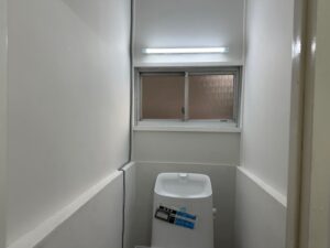 今回の工事では和式から洋式へ変えることで、座って使える安心感に加えて、床や壁の汚れが広がりにくく お掃除もしやすいトイレになります。
