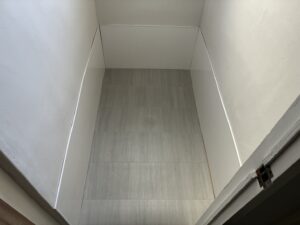 床の仕上げが完了した状態です。 器具を付ける前に、取り合い・段差・ 納まりを最終チェックします。
