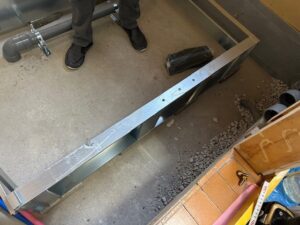 この架台の設置がしっかりしていないと、 床の納まりや浴槽の水平、全体の組み立て 精度に影響してしまうため、とても 重要な工程です。