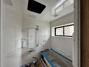 浴室交換工事は、解体して終わりではなく、新しい設備を正しく組み立て、周囲との納まりまで整えていくことで、 使いやすく安心できる空間に仕上がっていきます。 完成に向けて、引き続き丁寧に進めてまいります。