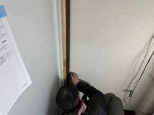 三方枠はそのまま付けるのではなく、 まずは枠の寸法を正確に測って、ビスが効く ように下地を入れていきます。 ここでズレが出ると、