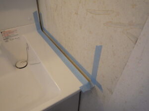 撤去後は、普段見えない場所にホコリや汚れが溜まっていることが多いので、新しい洗面台を付ける前にしっかり清掃してから取り付けに移ります。