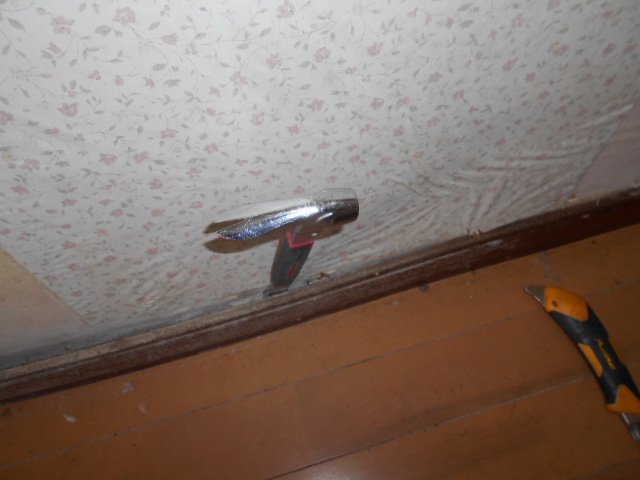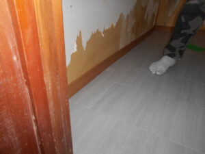 中段についていた見切り縁とパネルを撤去後、既存巾木を外して行きます。