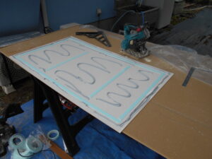 仮置きをして床の幅に合わせてカットして、形を整えて行きます。