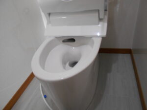 便器交換完了です。 大元の止水栓を開けて、水漏れと動作確認をします。