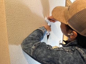 仕上げのパテやクロスをなじませて、跡が目立ちにくいようにする